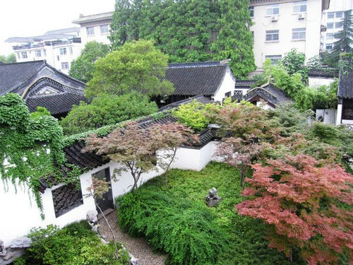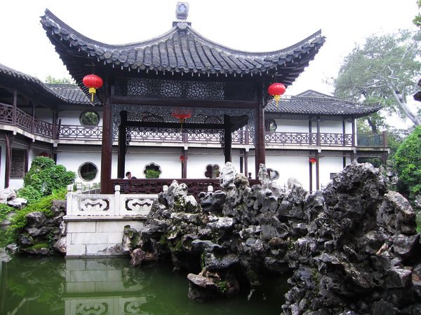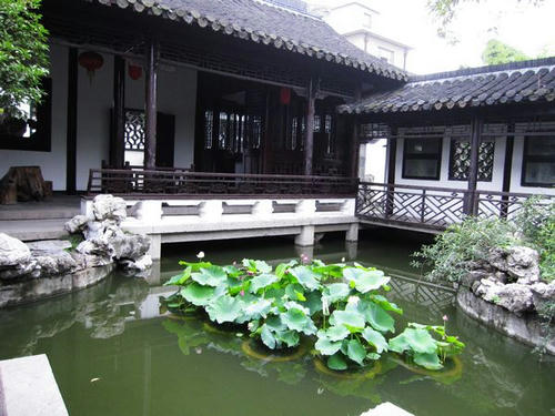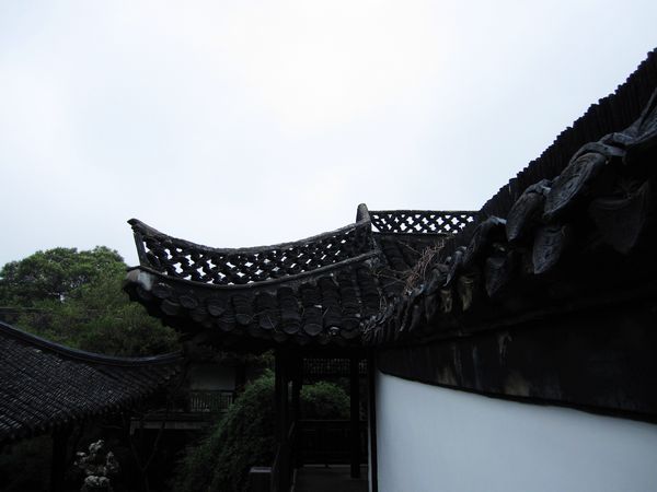 这个其实是戏台,想来从前园子主人就坐在前面的楼上,隔着水,喝茶品戏,现在这只是个亭子,可是那天我们去时,有几位老太太票友在楼里唱越剧,所以我们也切切实实地体验了一回,听时一个老太太唱的正是范派,旁边有人伴奏,流畅婉转,韵味极浓,大概江南地区越剧迷水平也要高于别处。戏声隔着水传来,就越加清亮动听,坐在那里,现代古代,人间天堂,一时不知自己身在何处。
