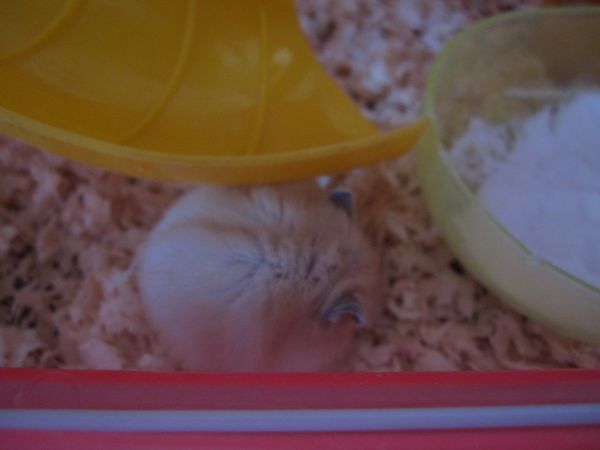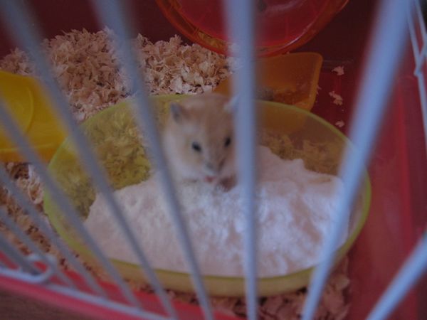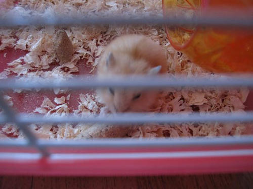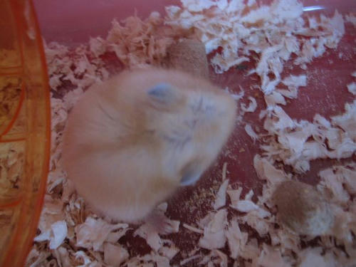 早上起来看到磨牙粮没了,因为听说仓鼠是需要比正常食量多一点粮食的动物,如果饲料不够他们会恐慌,于是我也恐慌地赶快添了新饲料,结果——根本就只是被藏到木屑里去了好吗!于是现在专注于啃新的而扔掉了旧的……(土黄色那个就是饲料,不是便便!